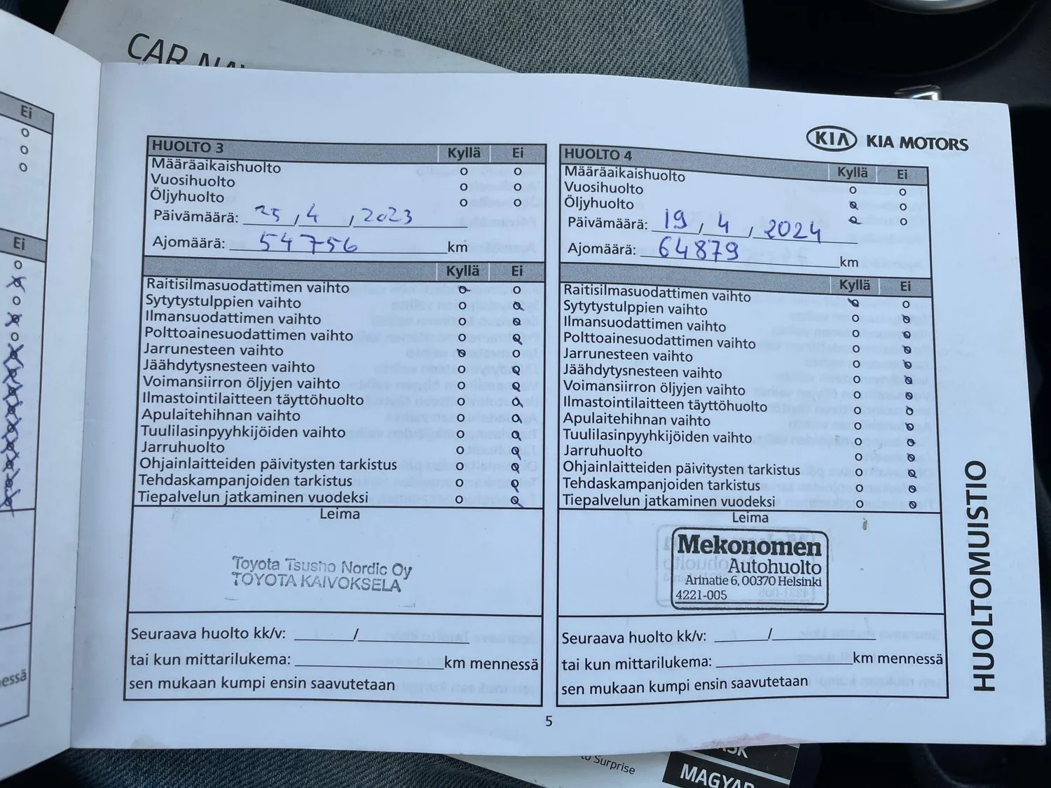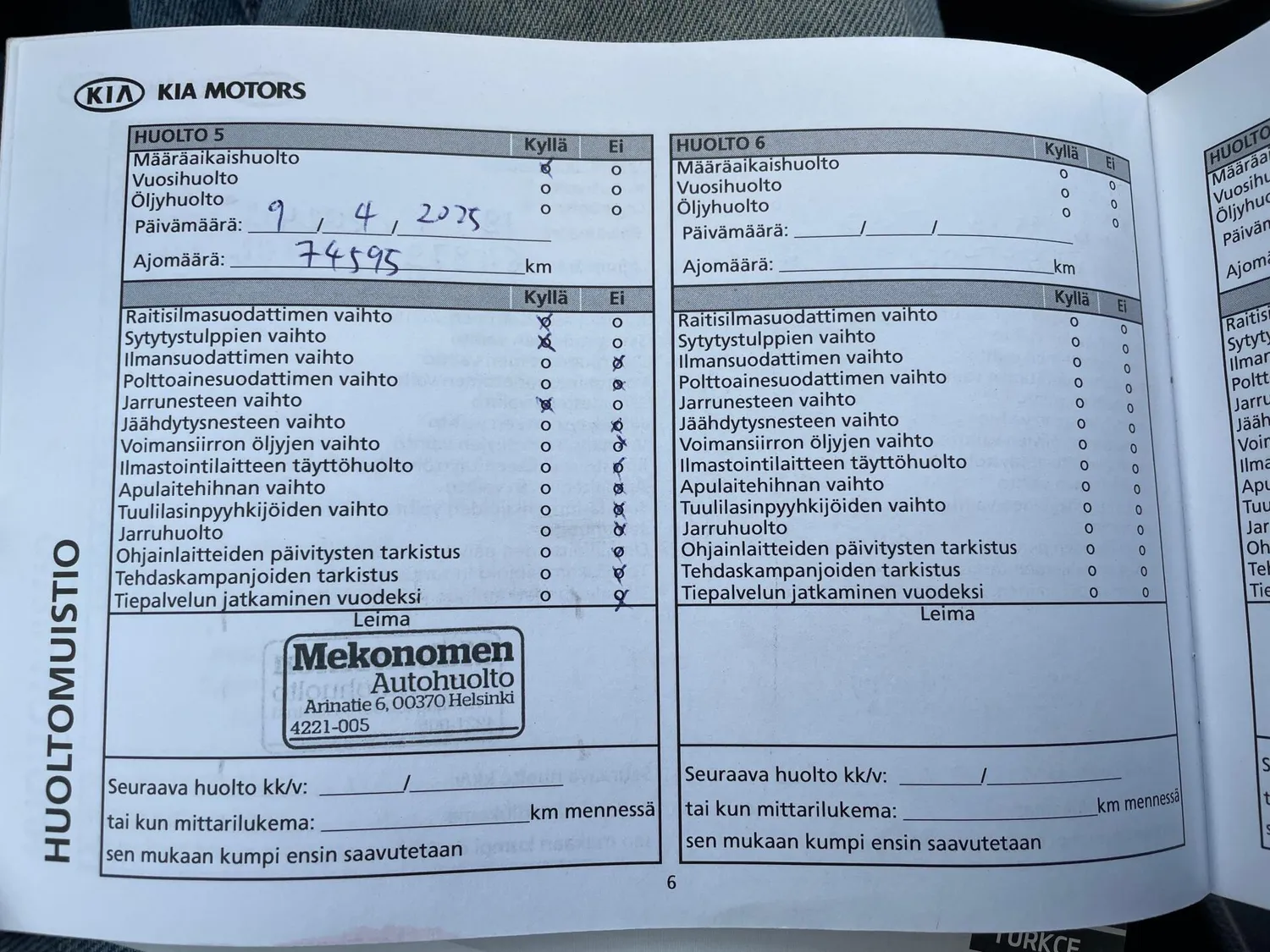 Viimeisin huolto: 4/25, 74tkm