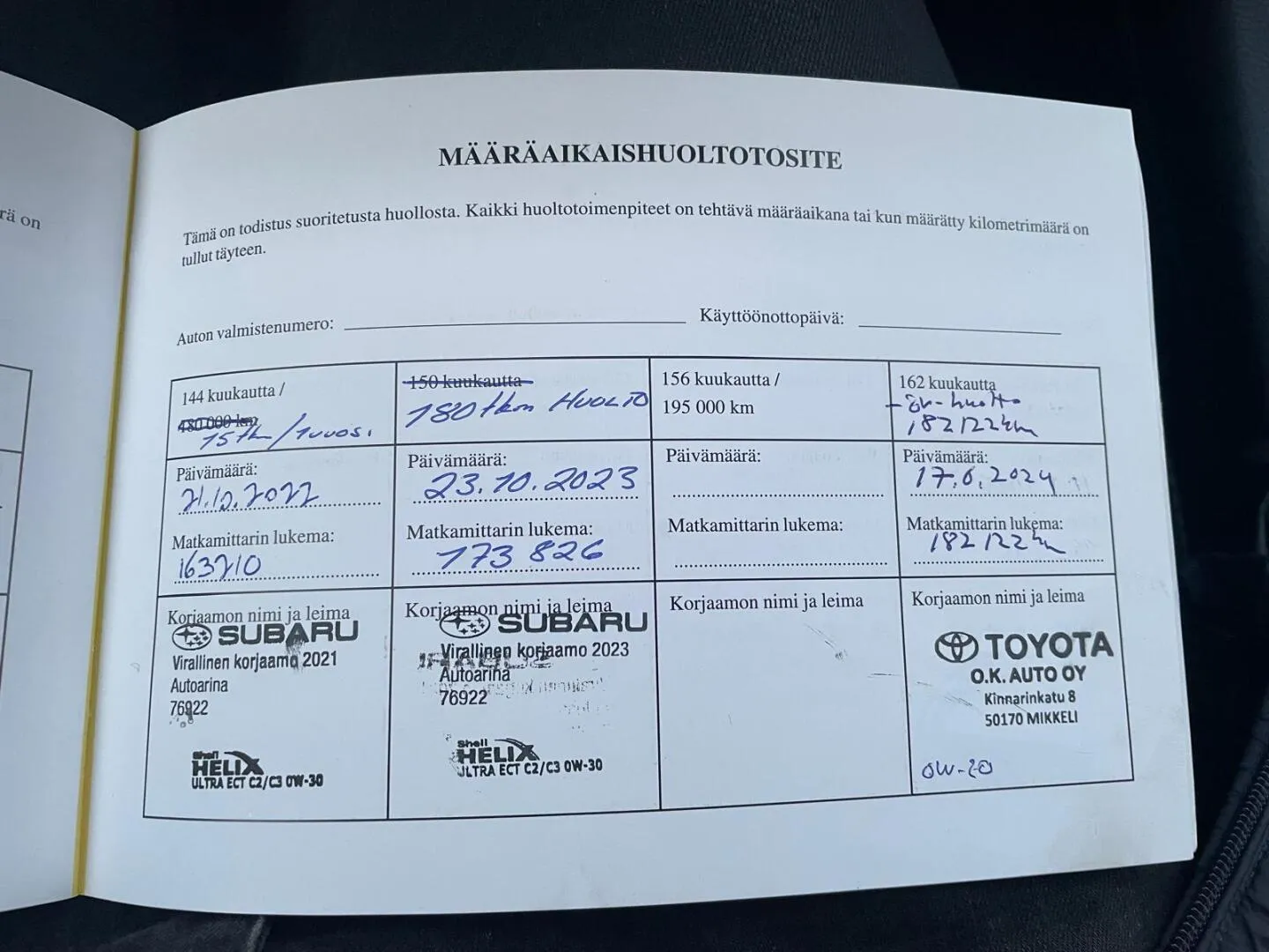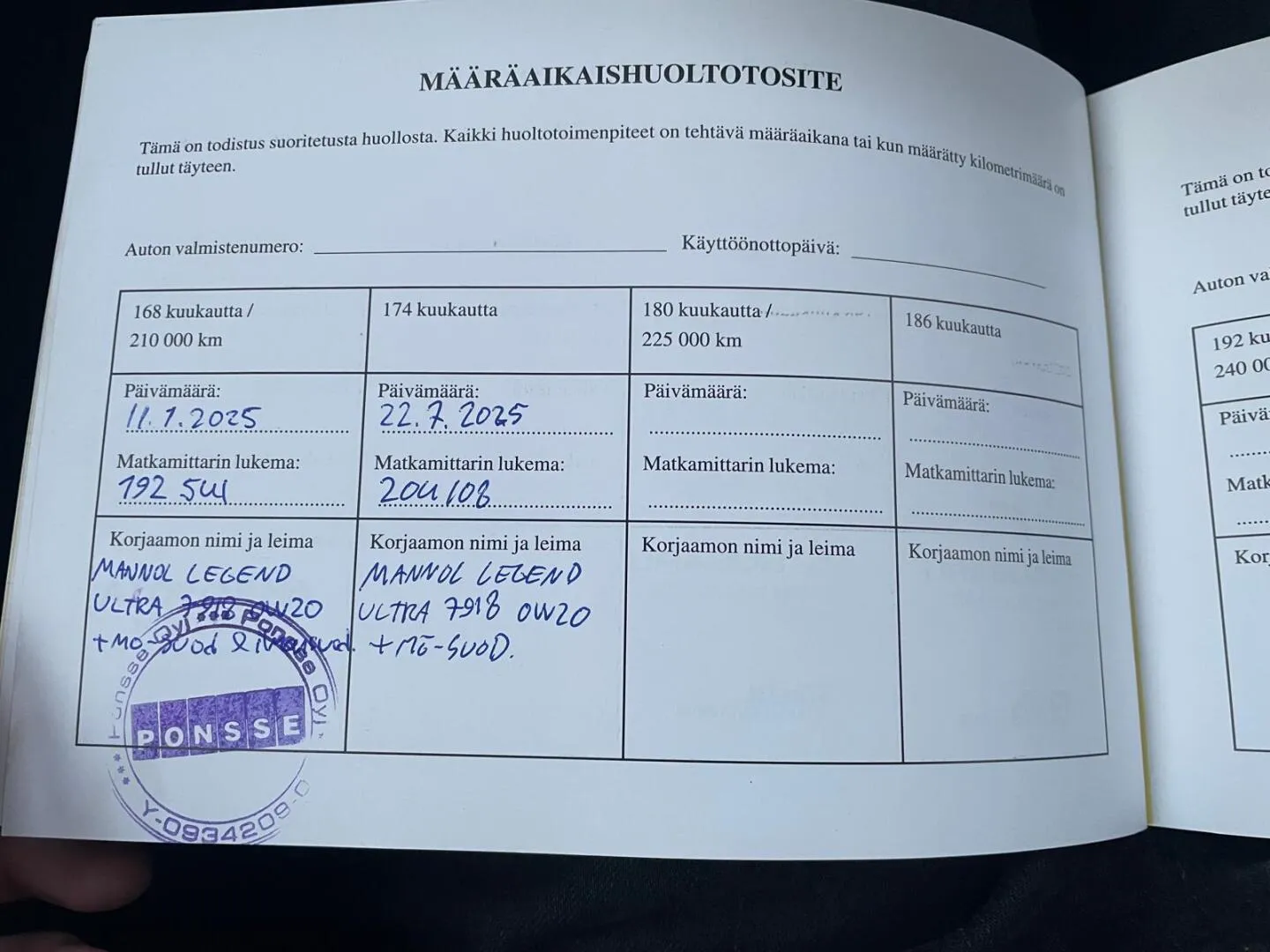 Viimesin huolto 7/2025, 204tkm