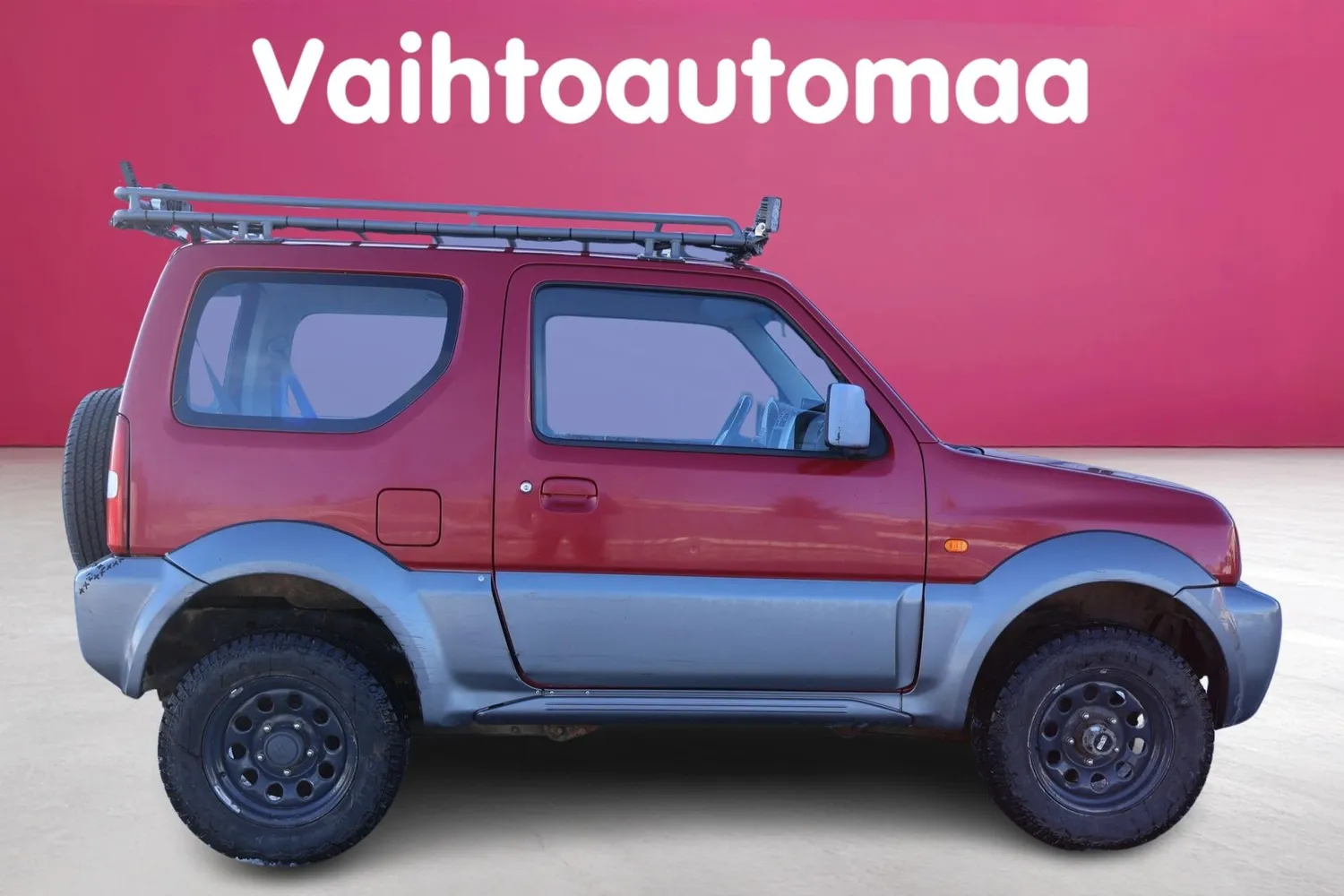 Tästä näppärä maasto-olosuhteiden mestari Jimny korotettuna, nappuloilla, koukulla ja kirsikkana kakunpäällä ilmastointi!