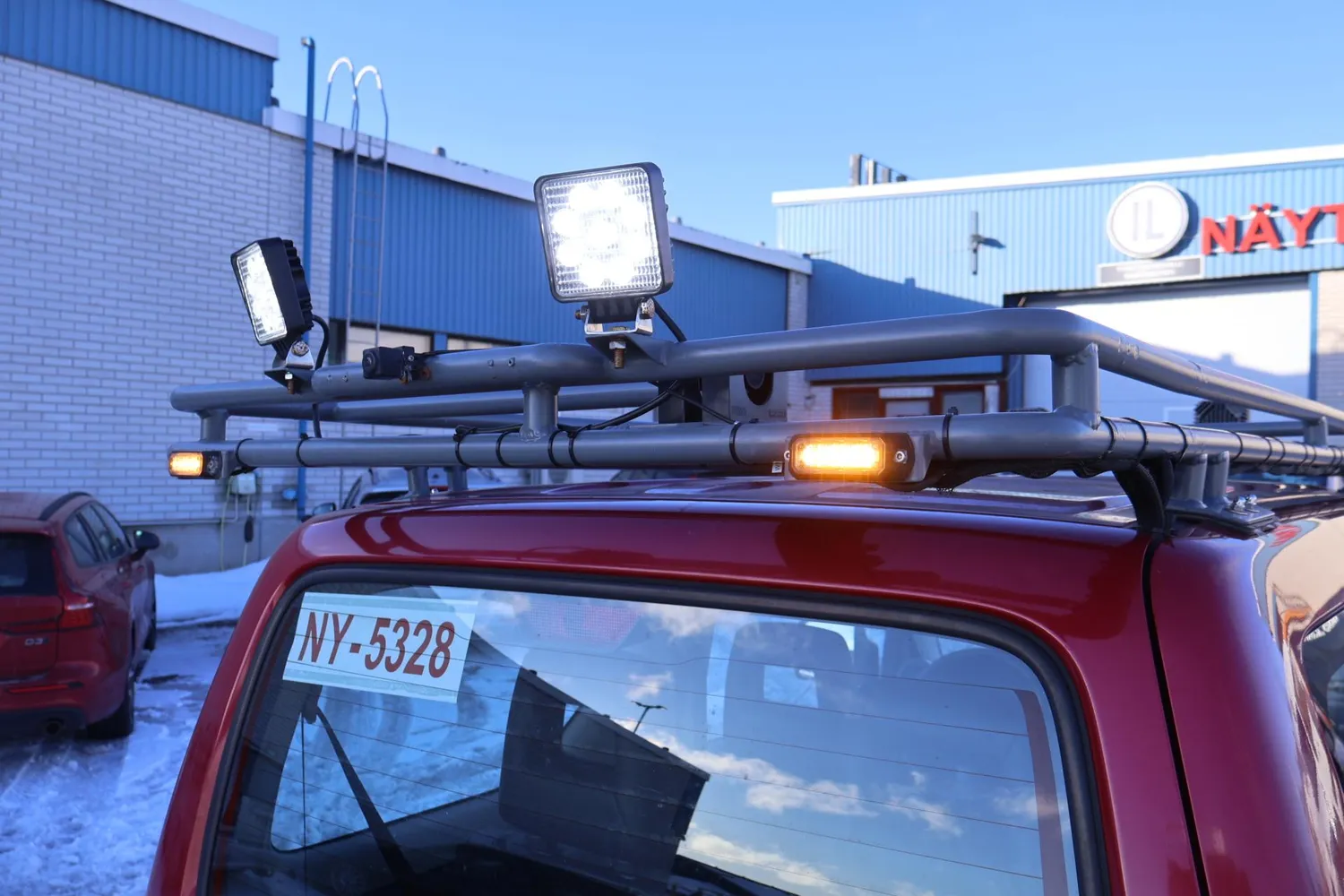Lisävalot eteen ja taakse, sekä vilkkuva huomiovalo